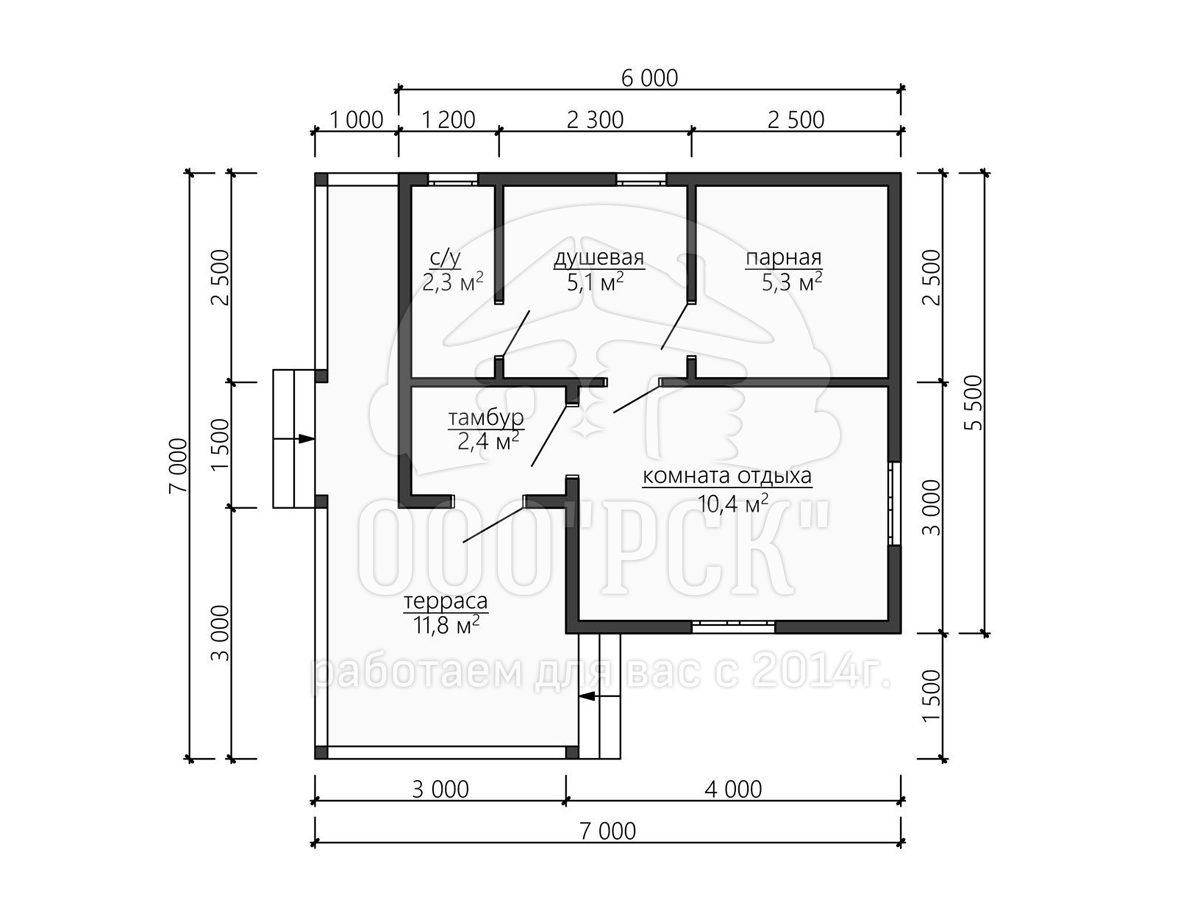 Планировка каркасной бани ББ-46